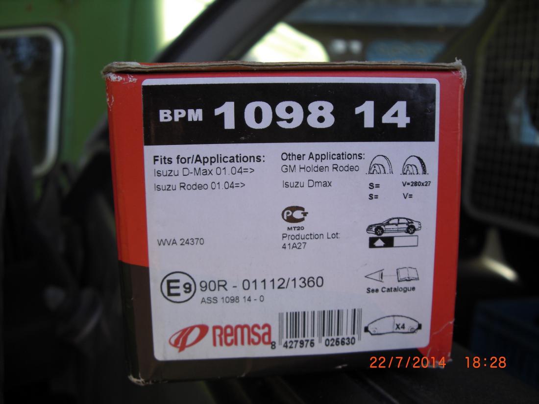 KMBoch, спасибо! Нашел тут кое-какие заменители, сомневался, подойдут ли? Сейчас вижу, что подойдут. Еще раз спасибо! Вот что нарыл: Isuzu (D-max)89040317 (8980511170), Ferodo FDB1816 (FSL 1816), Brembo P34005, Remsa 1098.14, TRW GDB 3466.