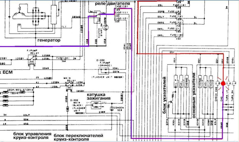 Что это даст? 1) теперь контрольная лампа зарядки при включении зажигания будет гореть полным накалом. 2) бензонасос не будет включаться.
